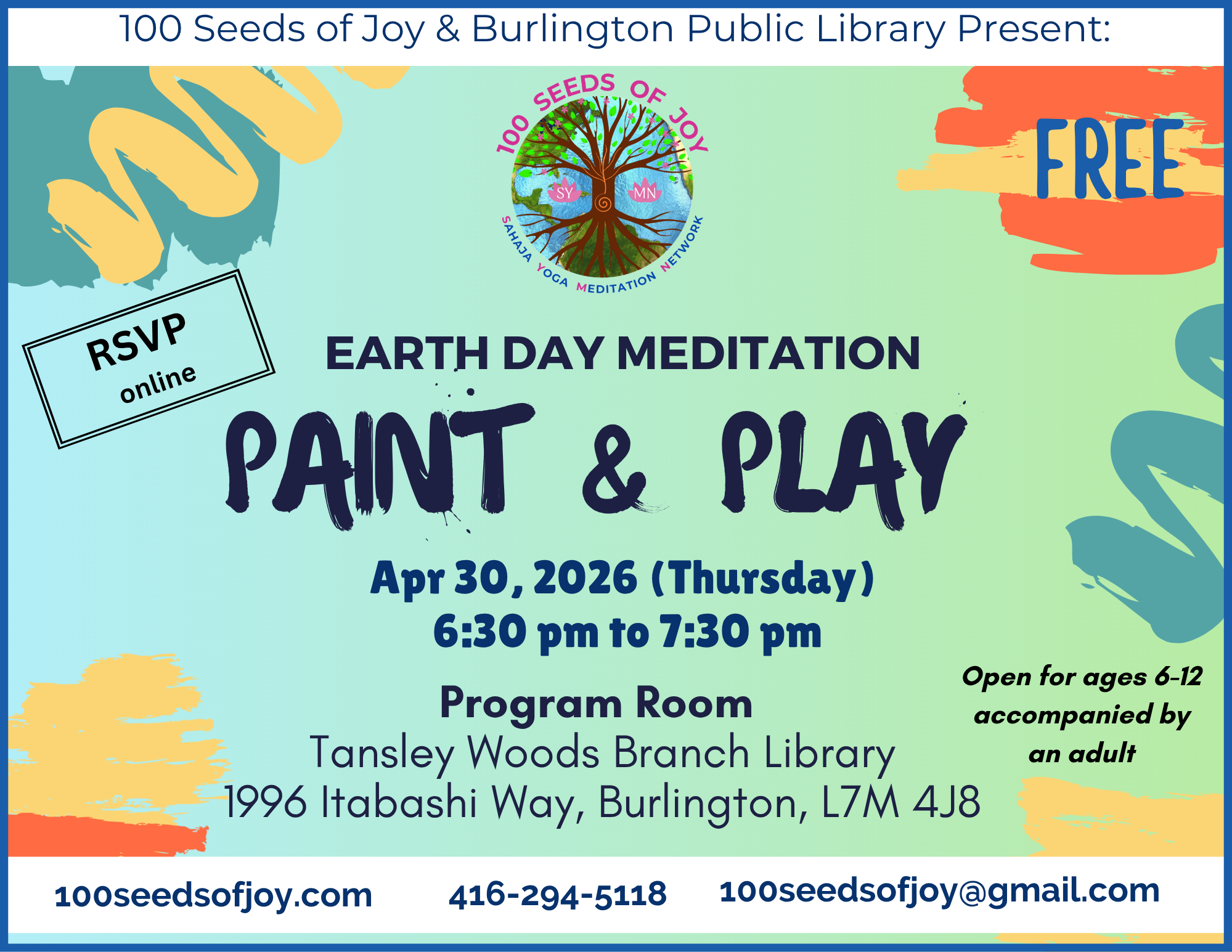 FREE Earth Day Meditation & Paint Play @ Tansley Woods Branch, Burlington Public Library